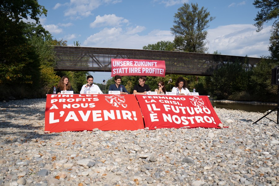 Nicola Siegrist Im ausgetrockneten Flussbett der Emme lanciert die JUSO Schweiz mit Verbündeten die eidgenössische “Initiative für eine Zukunft”. Die